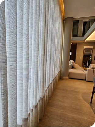 Oferecemos cortinas personalizadas, estruturadas e duráveis, disponíveis em diversas texturas e cores, garantindo a solução perfeita para suas necessidades de decoração. Transforme seu espaço com as melhores cortinas e persianas de Araxá.